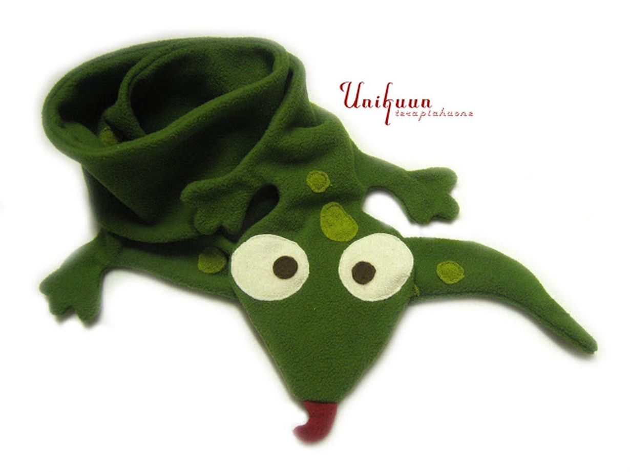 Suuri Käsityö - itse tehty lahja Vihreä liskohuivi 26.11.2012 klo 11:51 Fleecestä tehty liskokaulahuivi. Unikuut
