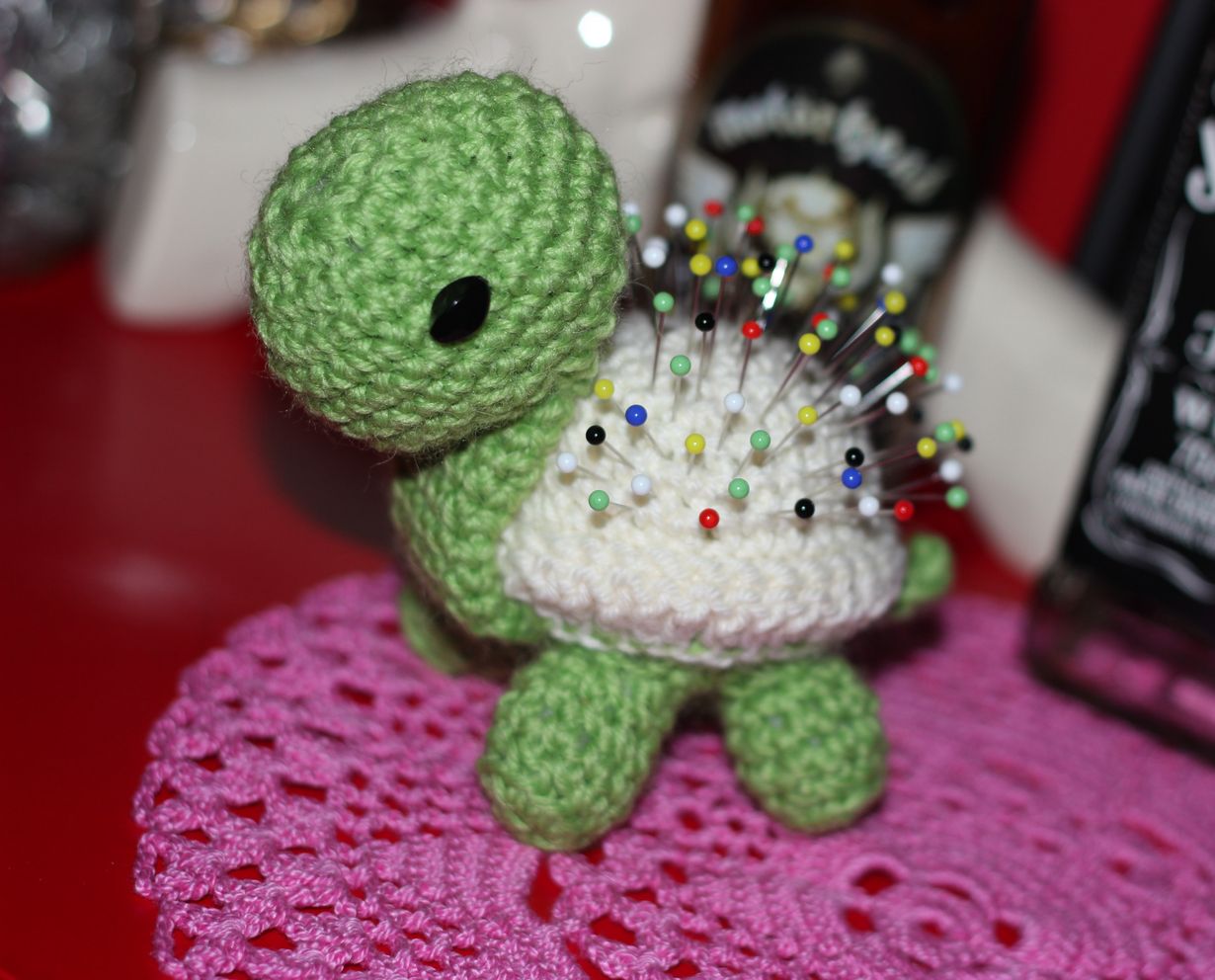 Suuri Käsityö: Lähetä kuva itse tehdystä neulatyynystä Virkattu kilpikonna neulatyyny 4.2.2016 klo 17:30 Tämä neulatyyny oli hauska virkkauskokeilu. Malli on niin syötävän suloinen, että menee ihan koristeestakin! :)