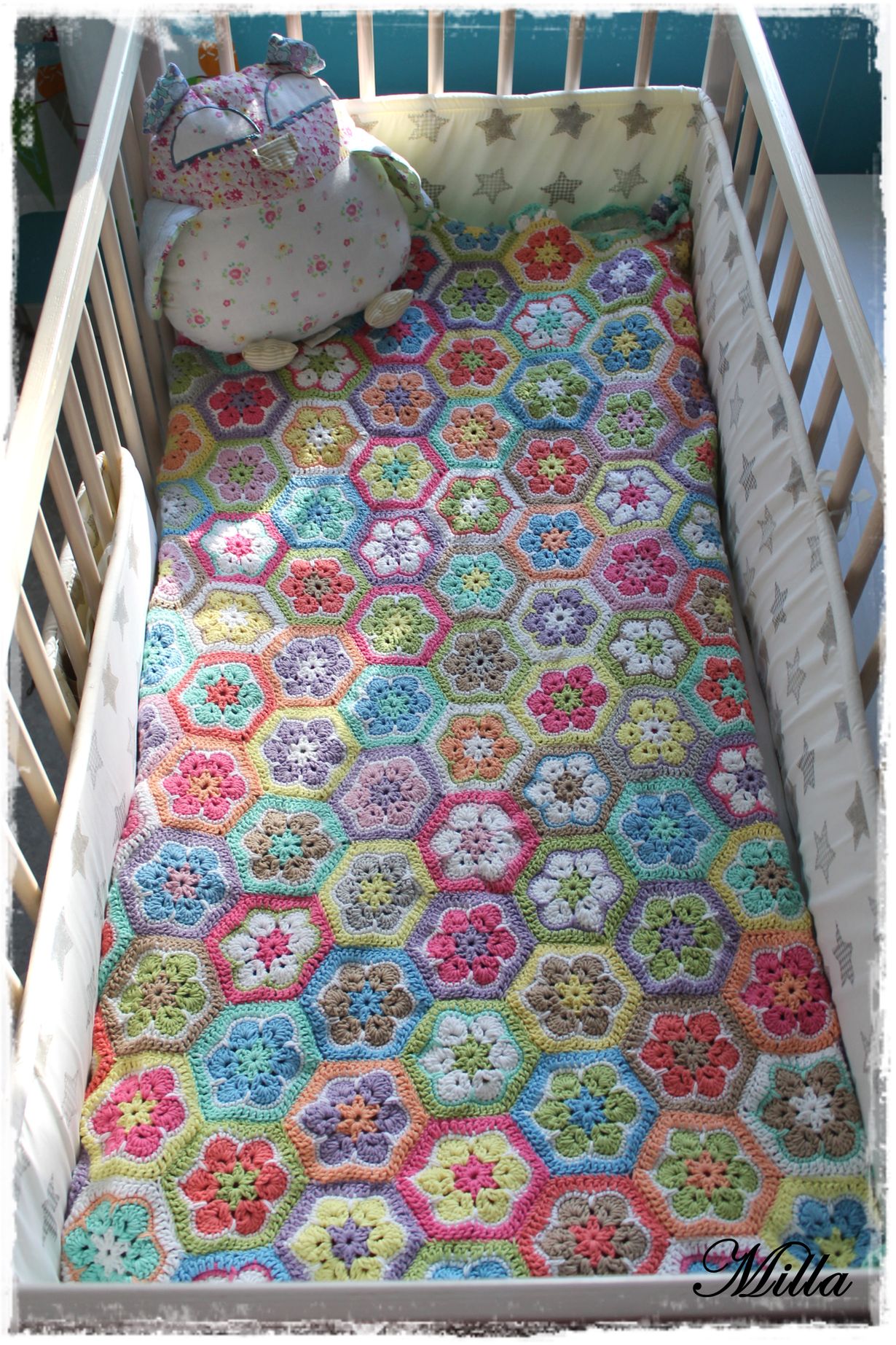 Virkattu päiväpeitto lastensänkyyn