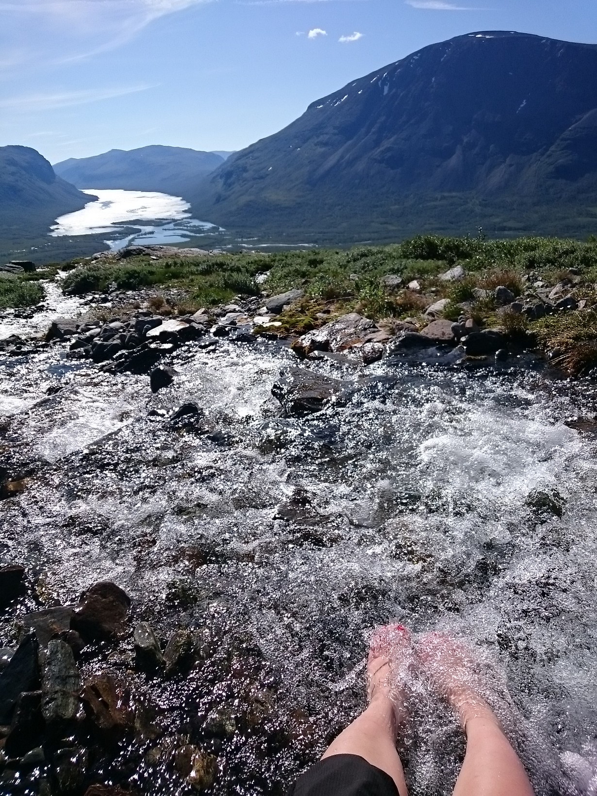 Kuva on otettu heinäkuussa 2016 vaelluksella Pohjois-Ruotsissa Abiskossa. Aurinko helli meitä joka päivä, kuten kuvasta näkyy. Vaeltaminen noissa maisemissa oli ihanaa mutta kuumuus ja korkeuserot tunturissa vaativat myös välillä kuvankaltaista lepotaukoa. Ehkä kuva sopisi heinäkuulle.