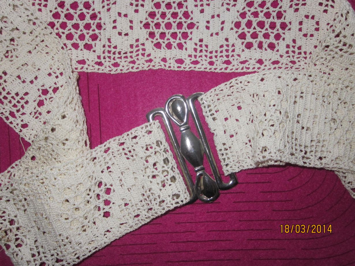 Suuri Käsityö - Itse virkattuja kodintekstiilejä vyö 18.3.2014 klo 22:27 itsevirkatusta lakananpitsistä saa oivallisen vyön kotelomekkoon katia