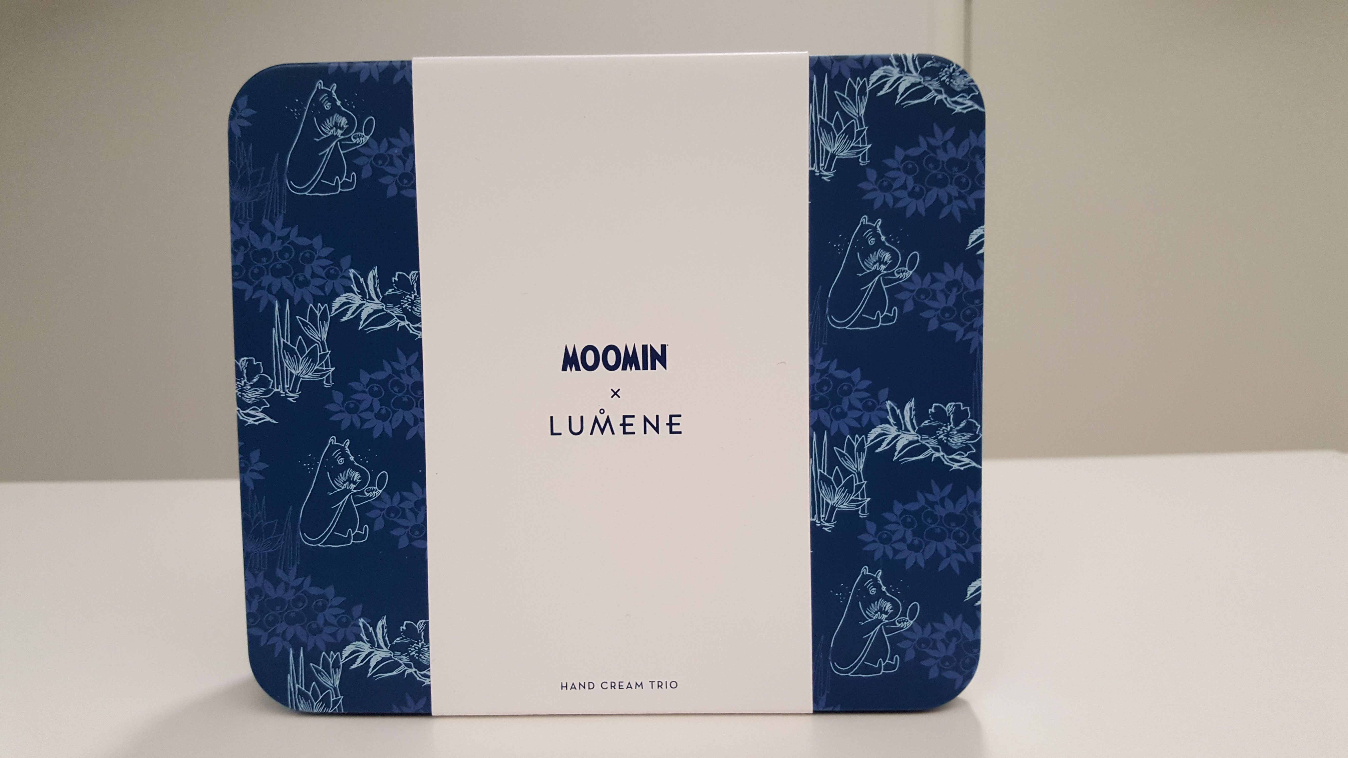 Moomin X Lumene -pakkaus sisältää kolme hoitavaa käsivoidetta.