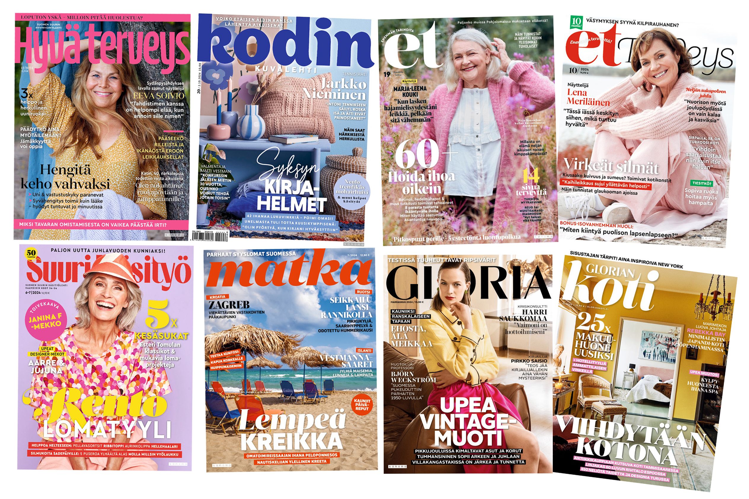 Arvomme äänestäneiden kesken kolmen kuukauden tilausjakson valitsemastasi Sanoman aikakauslehdestä: Gloria, Glorian Koti, ET-lehti, ET Terveys, Hyvä terveys, Kodin kuvalehti, Matka, Suuri käsityö. Arvomme kaksi lehtitilausta. Yhden palkinnon arvo on 38-75 euroa.