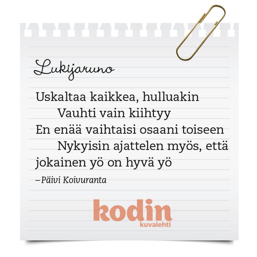 Nykyisin ajattelen myös, että jokainen yö on hyvä yö