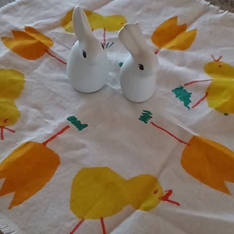 Lähetä kuvakisaan kuva pääsiäispupustasi - voita Jokipiin Pellavan torkkupeitto ja tyyny