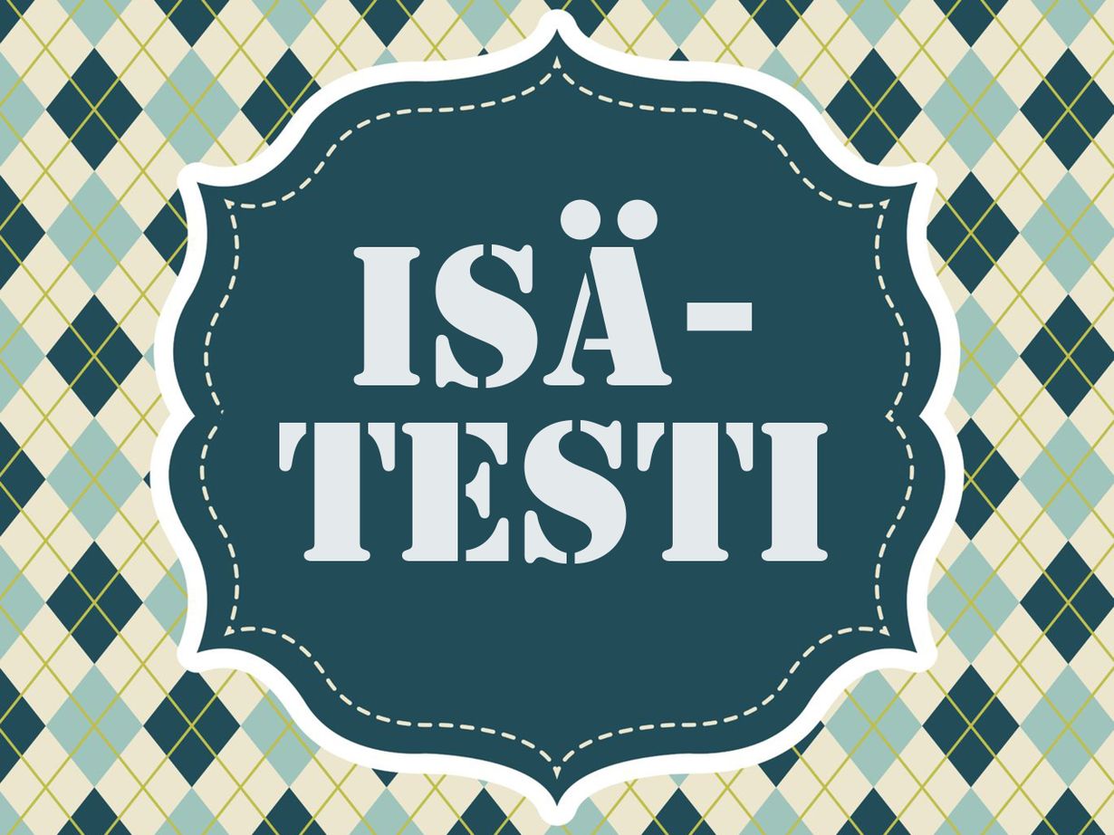 Osallistu Testaa, ketä julkkista isäsi muistuttaa! Teksti Tarja Hirvasnoro ja Arja Kuittinen Kuva Heidi Korhonen 2.11.2015 klo 10:00 Tällä testillä saat selville isäsi salaisen julkkisminän. Voit printata tuloksen hänelle isänpäiväkortin väliin. Tilaa Kodin Kuvalehti Lisää aiheesta 28.8.2015 klo 10:12 Oletko karvarousku vai haisuhapero? Testaa, mikä sieni olisit testi osallistu isä isänpäivä Tarja Hirvasnoro Arja Kuittinen Suosittelemme 22.4.2015 klo 9:00 Tee pikatesti: millainen viherpeukalo olet? Tilaa Lue digilehtenä