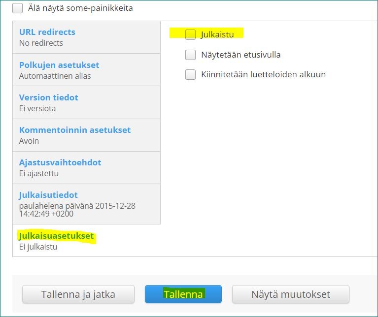 Onko postauksen pohja vaaleanpunainen? Se tarkoittaa, että olet tallentanut postauksen, mutta unohtanut julkaista sen. Käy Julkaisutiedoissa ruksimassa postaus julkaistuksi. Muista tallentaa lopuksi!