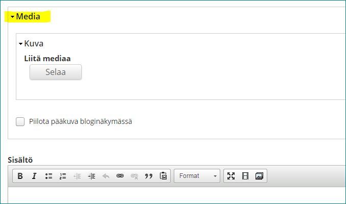 Klikkaa Media-kentästä turkoosia Selaa-nappulaa.