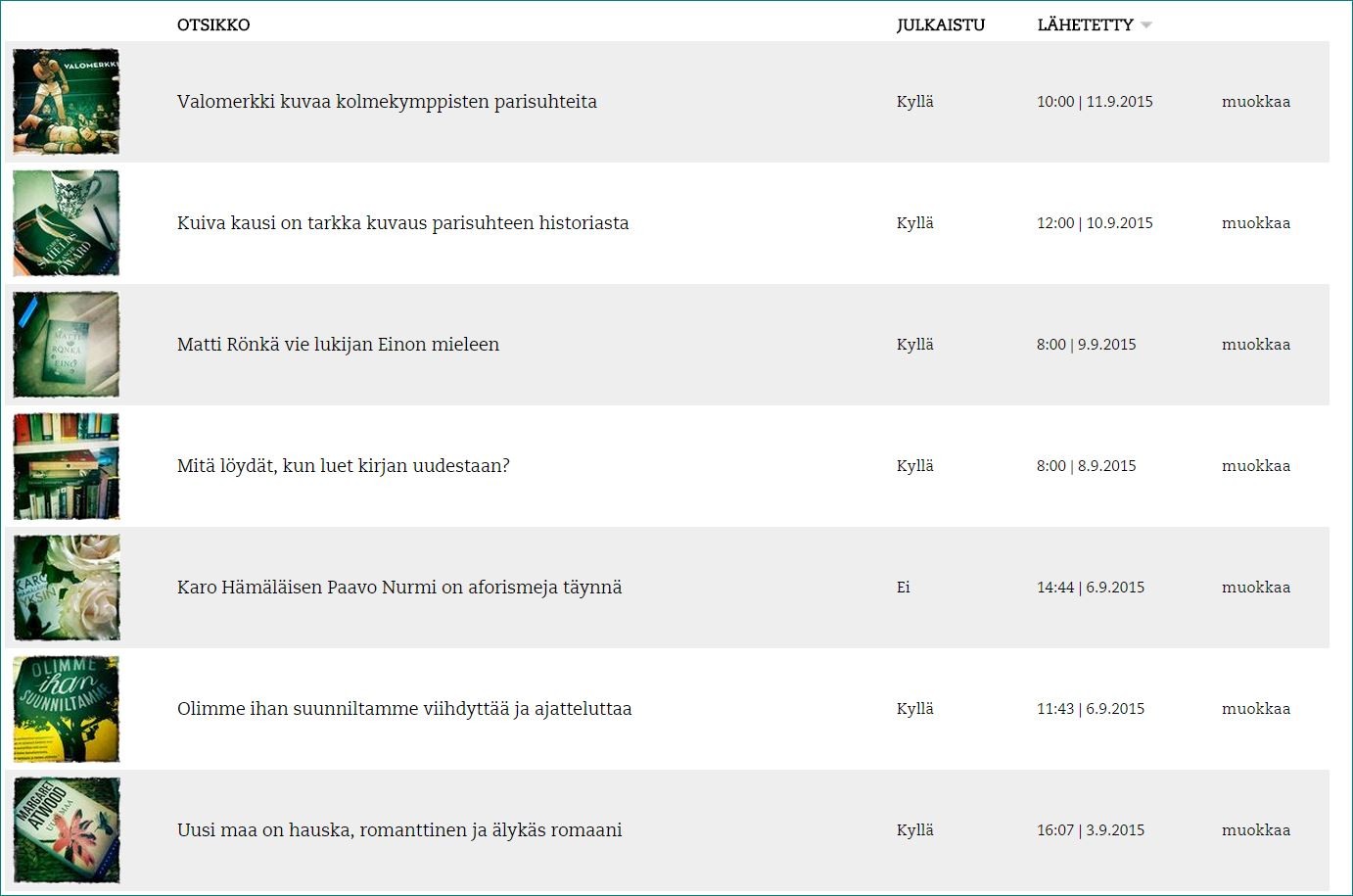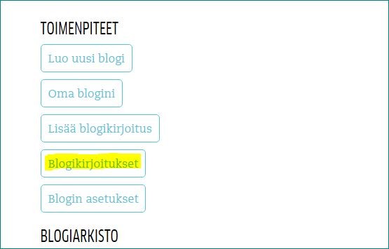 Profiilikuvasi alla on lista toimenpiteistä (katso kuva alla). Valitse Blogikirjoitukset ja saat näkyviin listan kaikista postauksistasi ja pääset muokkaamaan niitä.