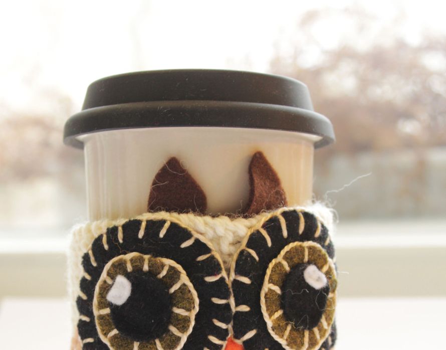 Sorry for my horrible Finnish I am learning :P. This owl and coffee mug are a beautiful package for a special present of to cheer up your mornings the upcoming dark days of autumn and winter. The mug is in ceramic and the owl was carefully crocheted and embellished with pressed felt details.