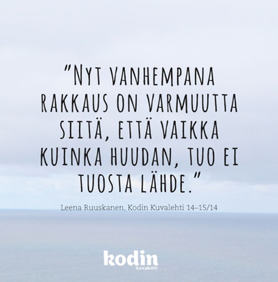 Rakkaudesta 9.9.2014 klo 16:30 Tilaa Kodin Kuvalehti ajatus oivallus voimalause Tilaa Lue digilehtenä