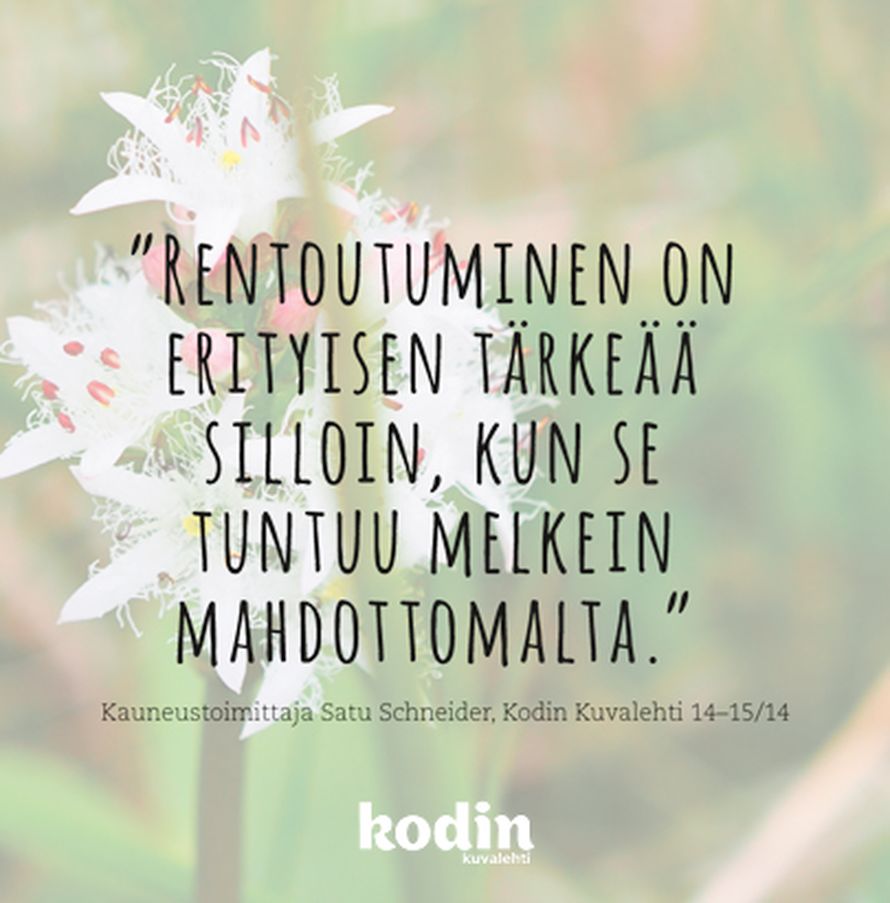 Rentoutumisesta 9.9.2014 klo 22:30 Tilaa Kodin Kuvalehti ajatus oivallus voimalause Tilaa Lue digilehtenä