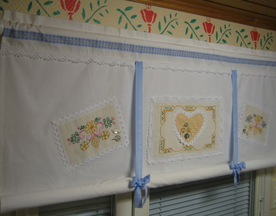 rullakappa singer 27.11.2011 klo 15:53 Vanhasta lakanasta tein kapan, johon ompelin merkattuja kuvioita reunapitsillä. nappeja laitoin koristeeksi. Silkkinauhojen avulla kiinnitin kapan ylös. Tilaa Kodin Kuvalehti Tilaa Lue digilehtenä