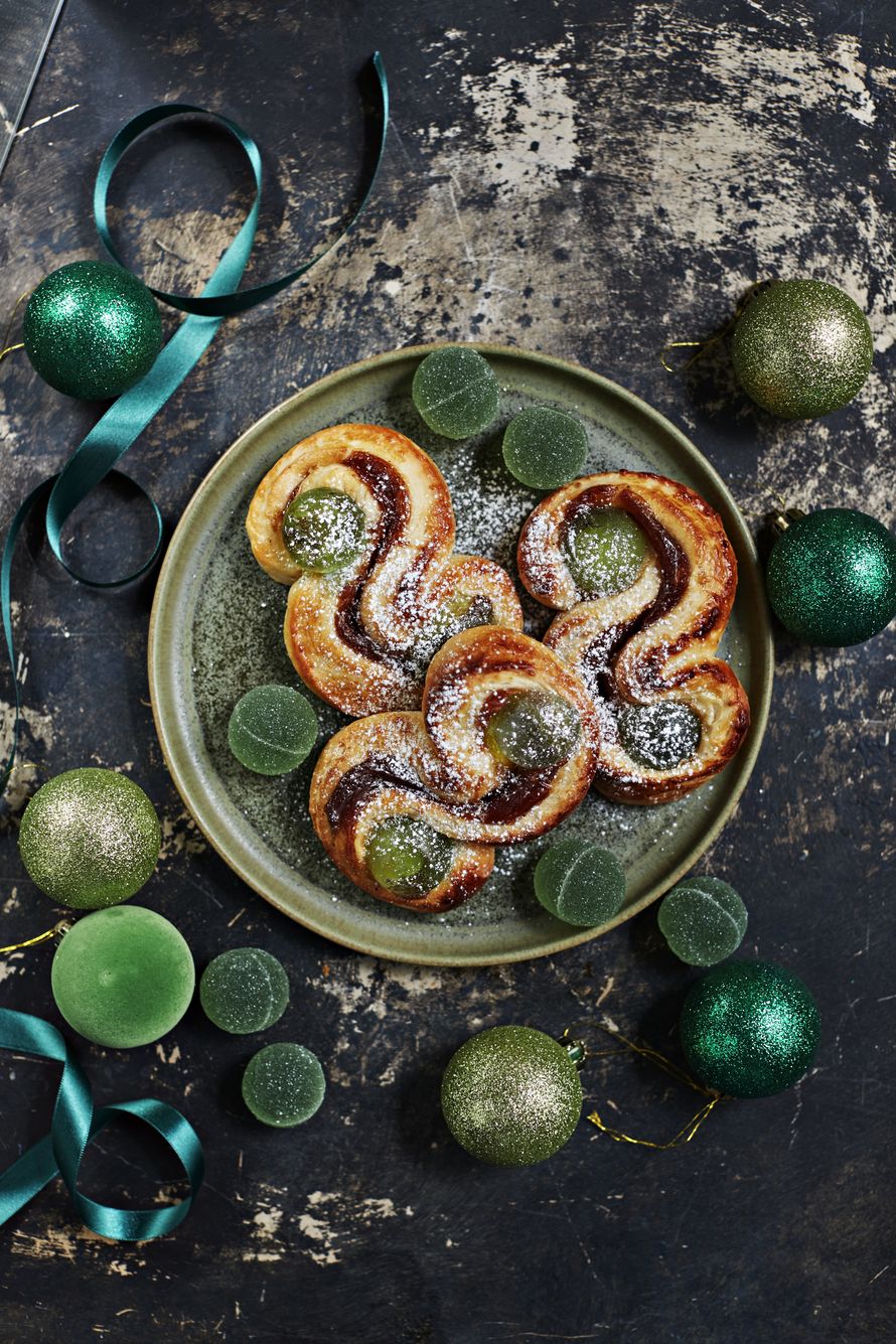 Ihan ässä idea! Kiepauta vihreitä kuulia joulupullien kierteisiin