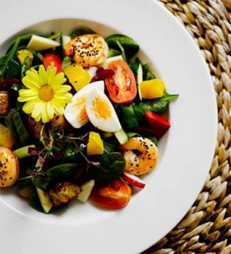 Scampisalaatti ja vadelmavinaigrette