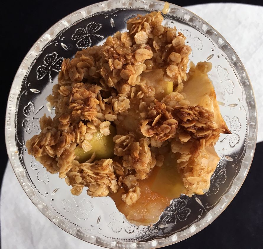 Perinteisen omena-kaurapaistoksen juju on ohjeen yksinkertaisuudessa ja nopeudessa. Uunivuokaan lohkotaan omenoita ja päälle sekoitetaan kaurahiutaleista, sulatetusta voista ja sokerista seos. Ainesten määriä voi vaihdella sen mukaan, miten makeaa tekee mieli ja keitä on syömässä.