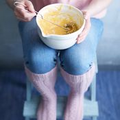 - Kolme palaa pilkottua tummaa leivontasuklaata sulaa herkulliseksi muumiotäytteeksi.