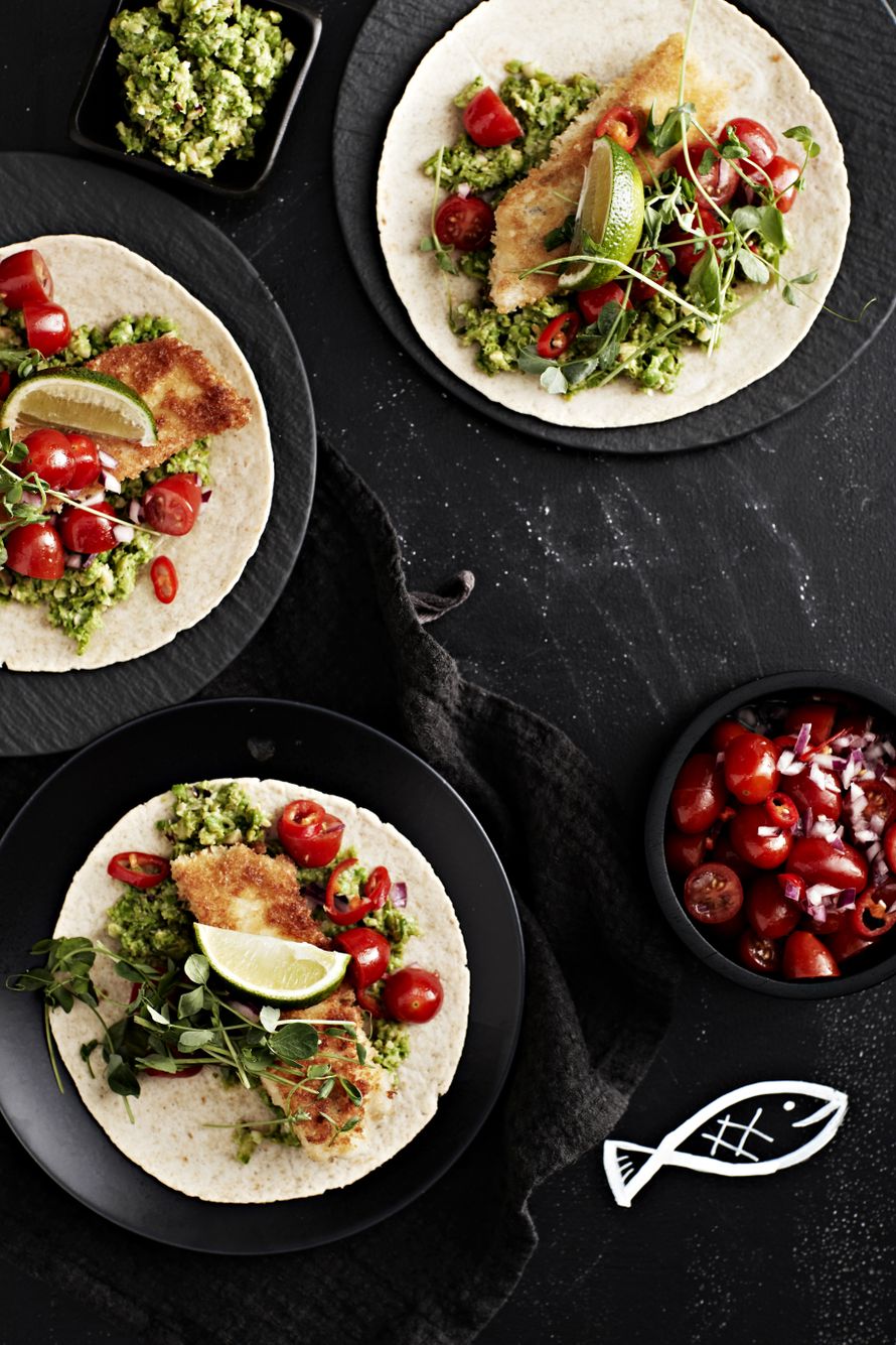 Kevättalven ruokahitti ovat helpot ja herkulliset kalatacot. Mehevä täyte tortillan väliin syntyy kuhafileestä tai muusta vaaleasta kalasta. Talvella, kun trendikkäille ruokakojuille ei pääse, tacot on onneksi helppo kokata kotona. Mehevä herneguacamolen ohje kannattaa laittaa talteen, sillä se maistuu kaikkien kalaruokien kanssa.