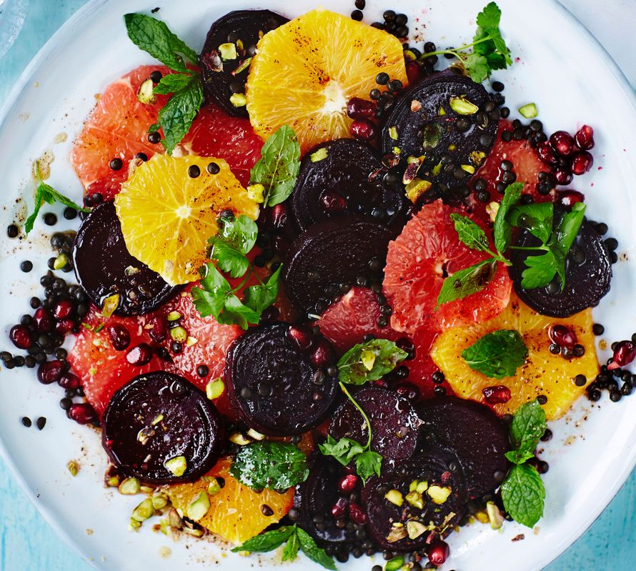 Mausteisen kirpeän salaatin idea tulee Lähi-idän keittiöistä, vaikka se ei perinteinen jouluruoka olekaan.
