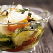 Siivuta kesäkurpitsa vuokaan sipulin, munien ja tomaatin kanssa, niin saat ihanan Provencen kesäkurpitsapaistoksen.