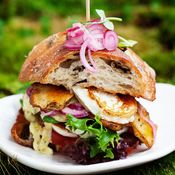 - Asettele sämpylälle salaatti. Se suojaa sämpylää pihvin ja kastikkeiden kosteudelta eikä sämpylä muutu mössöksi.