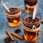 Yhdestä 0,75 litran glögipullosta riittää noin 15 drinkkiin. Myös alkoholittomat glögit toimivat, jos niitä käyttää hieman reilummin. Vaihda silloin kuohuviini ginger aleen.