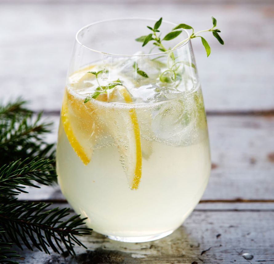 Vaalealle glögille sopivat sitruunaviipaleet ja yrtinoksat.