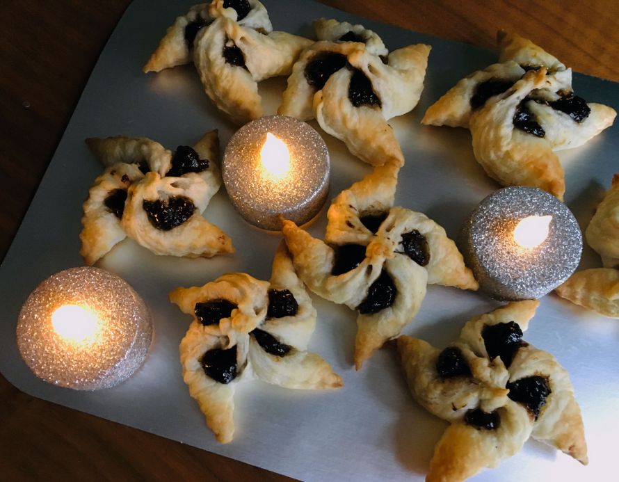 - Leikkaa jokaiseen kulmaan viilto ja laita keskella nokare luumumarmeladia.