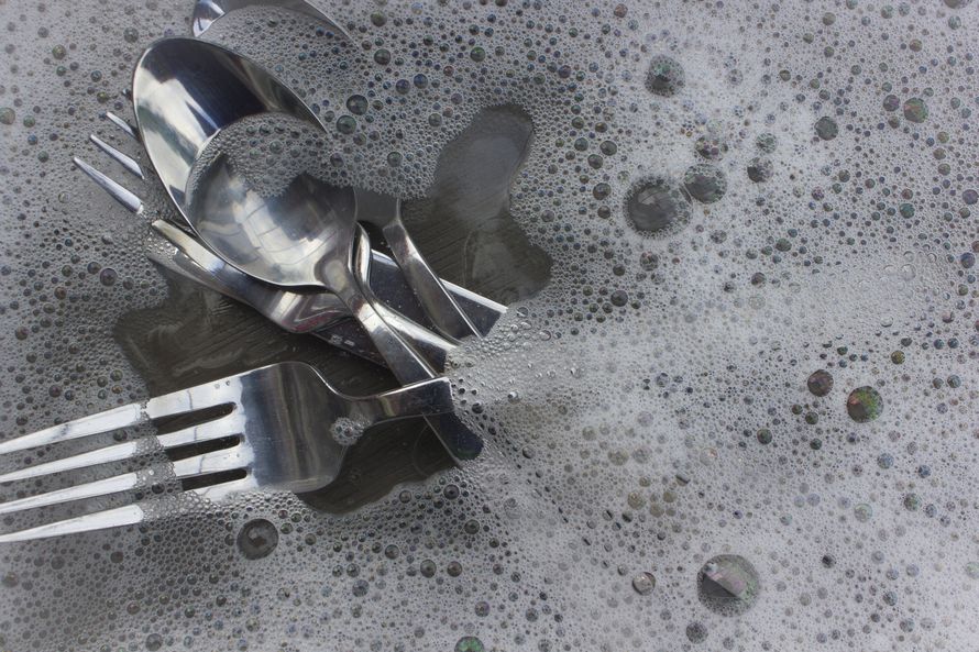 Tämä keino tuli suoraan isoäidin varastosta! Läikät lähtevät teräksisistä aterimista, kun keität ne pesujauhevedessä.