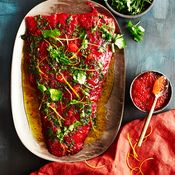 - Pyyhi mausteet kalan pinnasta ennen tarjoilua. Leikkaa kala ohuiksi viipaleiksi fileointiveitsellä.