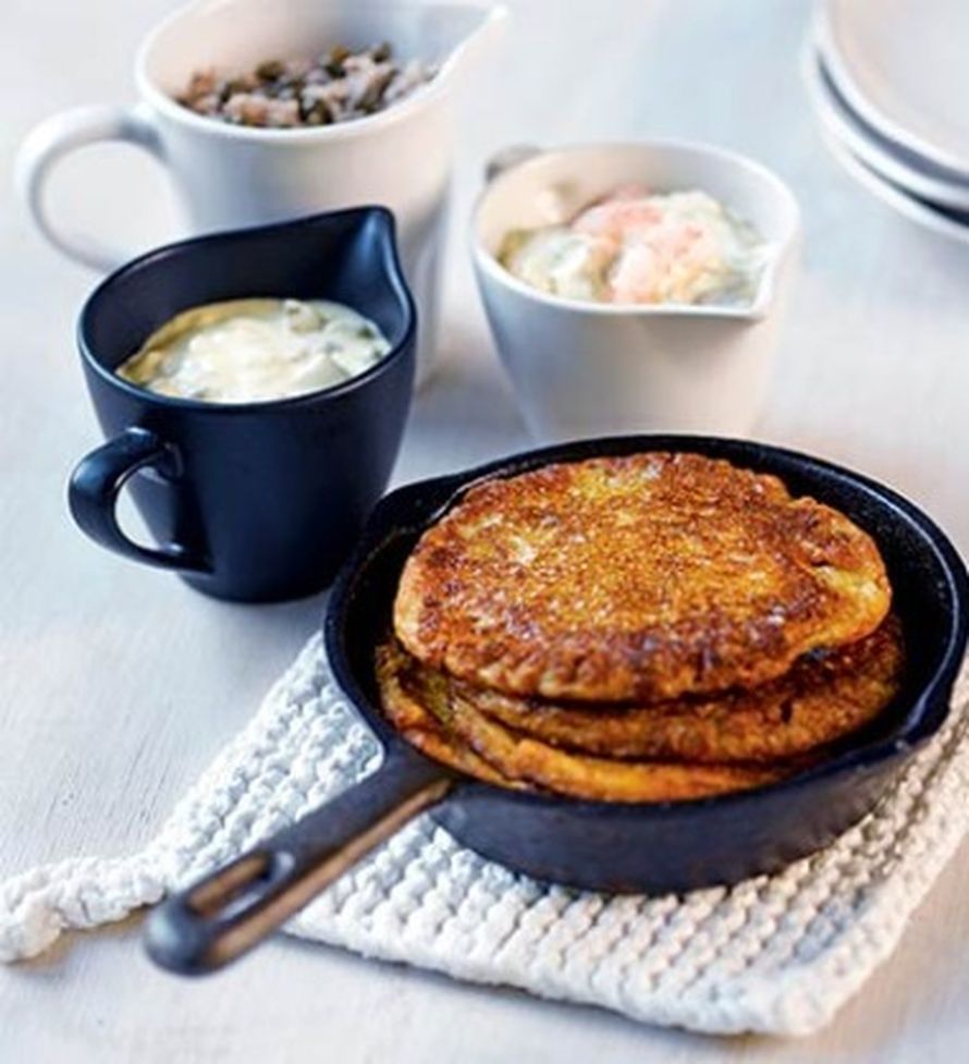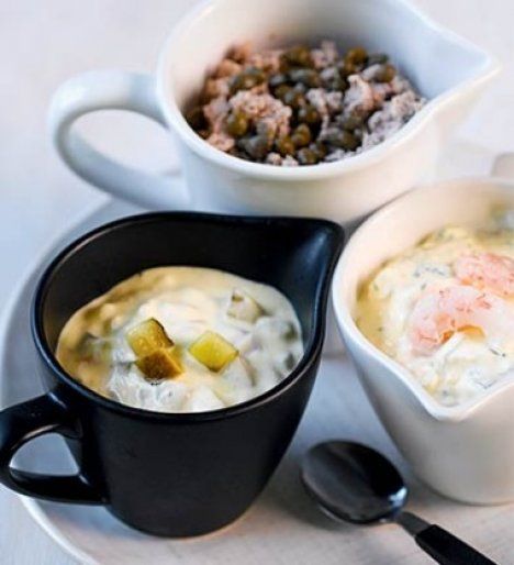 Jos mäti ei maistu tai haluat muuten vaihtelua blineihin, kokeile täyteläistä katkaraputäytettä, lempeän kirpeää suolakurkkutäytettä tai ruokaisaa vorschmarktäytettä.