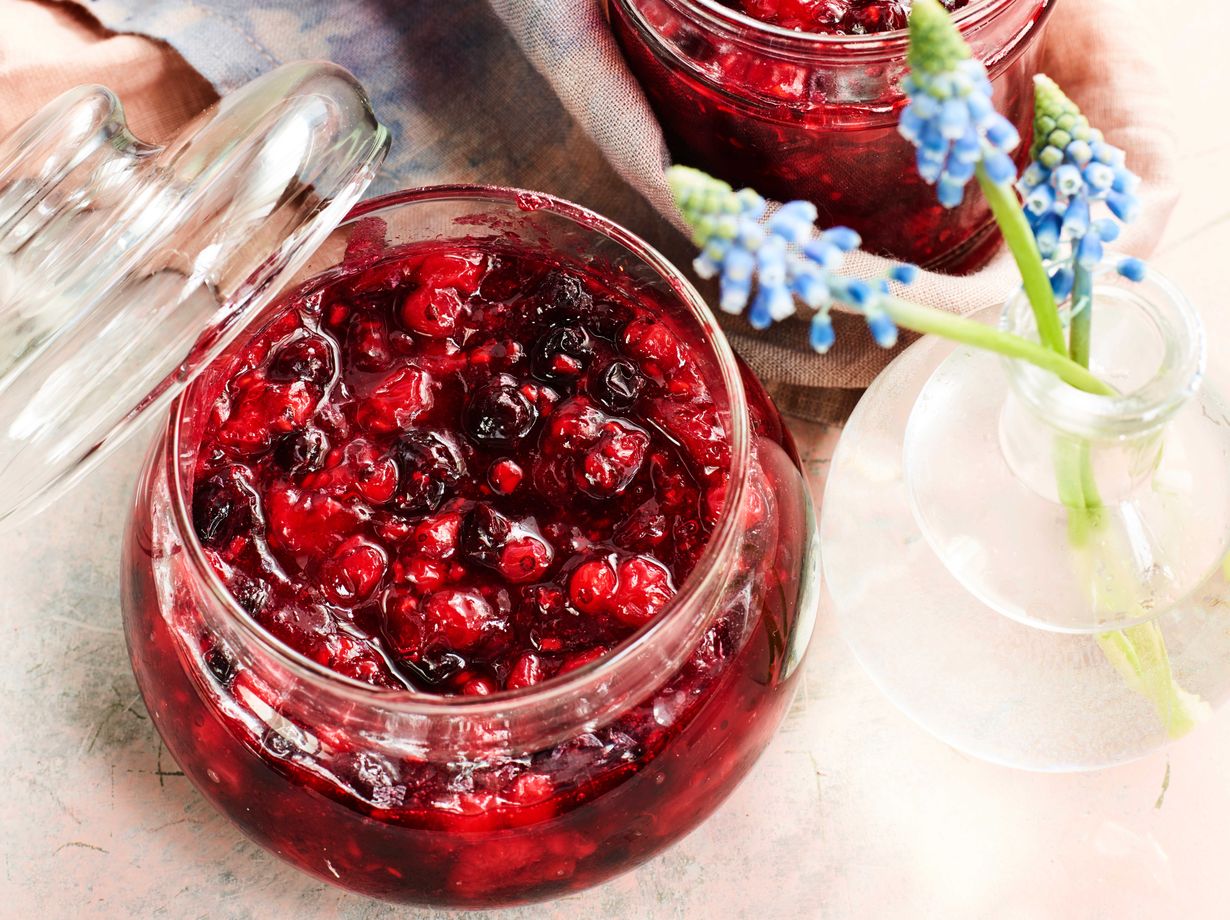 Pakastemarjoista saat myös mehevää sinappia. Musta- ja punaherukat sekä mustikat maustavat seoksen herkulliseksi ja värjäävät sen kauniiksi. Tässä sinapin resepti: