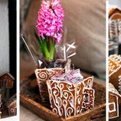 Kuusta ei ehkä tarvitakaan, kun huonekasvitkin saavat jouluisen asun. Kukkatikut syntyvät piparitikkareiden ohjeella. Aitojen pipareiden sijaan voit askarrella koristeet myös tukevasta pahvista.