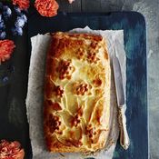 Äitini teki piirakan itse tehtyyn rahkavoitaikinaan. Itse oikaisin ja nappasin kaupasta isoja lehtitaikinalevyjä.