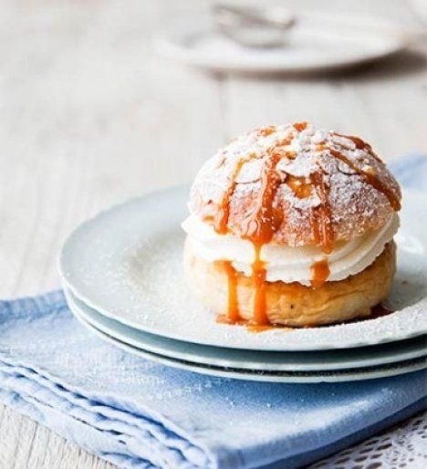 Täydellinen laskiaispulla syntyy kuohkeasta pullasta, täyteläisestä kermavaahdosta ja hillo- tai mantelisydämestä. Jos haluat vaihtelua, kokeile levittää kermavaahdon alle pelkkä kinuskikastiketta. Täydellisen laskiaispullan ohjeen löydät TÄÄLTÄ.