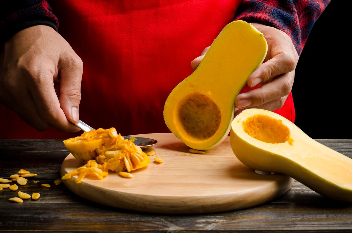 Puolita kurpitsat pituussuuntaan ja ota siemenet talteen. Mausta ronskisti suolalla, pippurilla ja oliiviöljyllä. Paahda 200-asteisessa uunissa 35 minuuttia. Anna vetäytyä huoneenlämmössä 15 minuuttia. Paahda siemenet oliiviöljytilkan ja merisuolan kanssa 185-asteisessa uunissa 12 minuuttia.