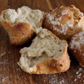 6. Leivät ovat kypsiä, kun ne kumisevat pohjaan koputettaessa. Peittele paistuneet leivät hyvin leivinliinoilla. Paista toinen erä leivistä.