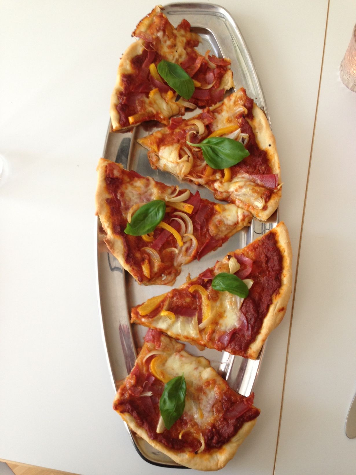 Olin viime viikonloppuna kummitytön luona viettämässä lauantaipäivää. Hän oli leiponut äitinsä kanssa ihania korvapuusteja ja suussasulavia toscapullia. Ruuaksi oli kotitekoista pizzaa, jonka kruunasi herkullinen tomaattisoosi. Olen hehkuttanut aiemmin palstallani tuota soosia, mutta annan sen nyt vielä kerran kaikille. Sitä ei tarvitse keitellä ja hauduttaa, mutta silti maku on ihan mahtava ja tosi tuore. Pizzan päälle kukin laittaa sitä, mistä pitää. Tässä meidän lauantaipizzamme.
