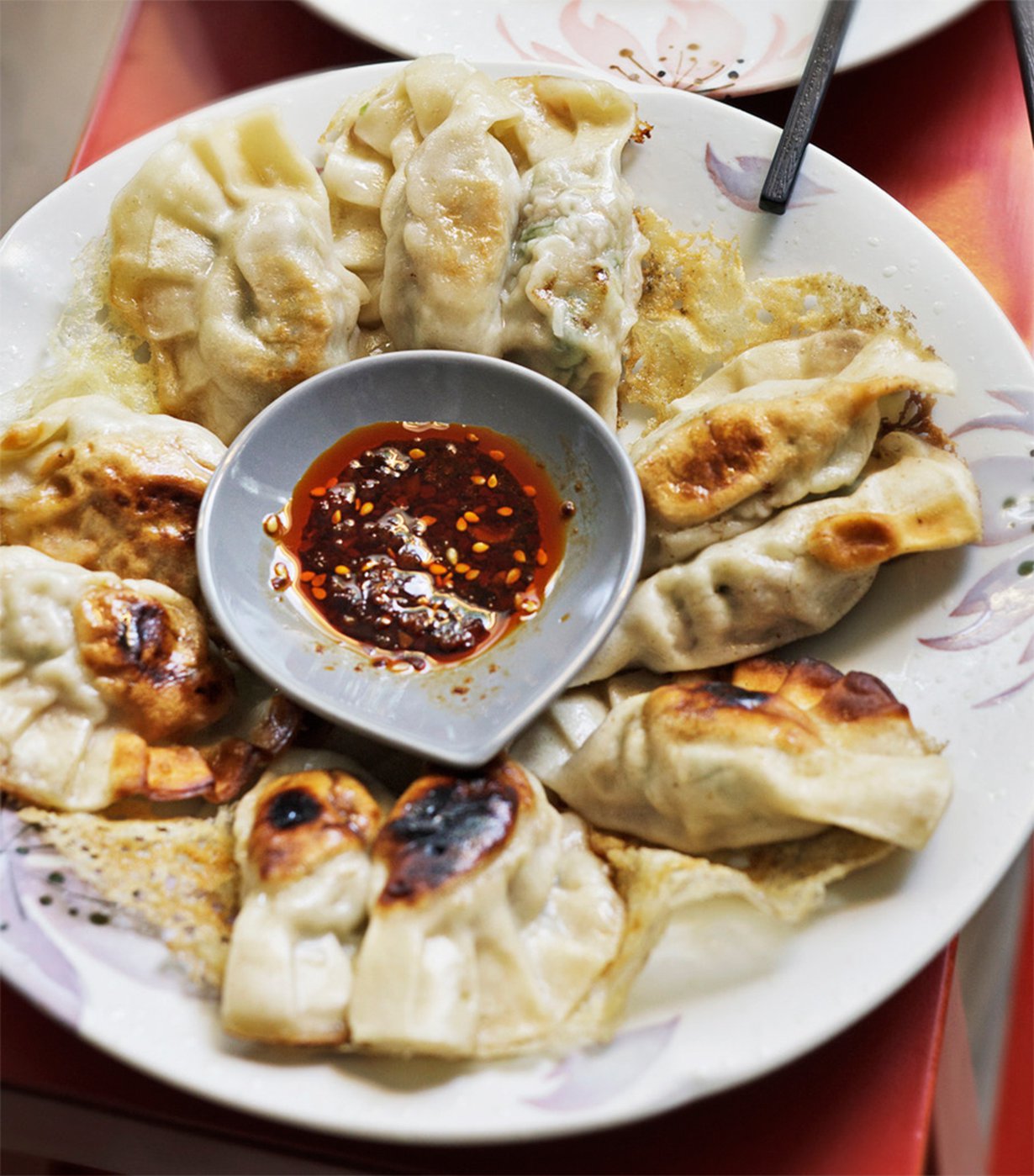 Vinkki! Voit myös paistaa dumplingsit lopuksi öljytyllä pannulla kullanruskeiksi.