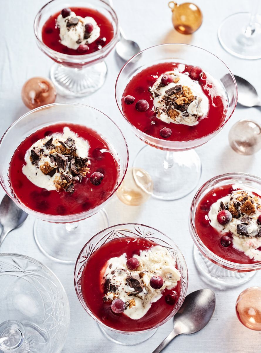 Tarjoa jäätelö karpalokiisselin kanssa tai syö sellaisenaan.