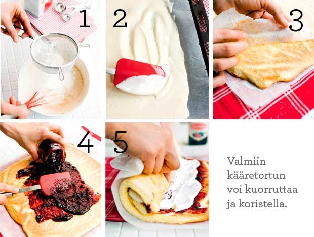 Suussasulava kääretorttu on helppo tehdä. Täytettä vaihtamalla se muuttuu myös juhlapöydän herkuksi.