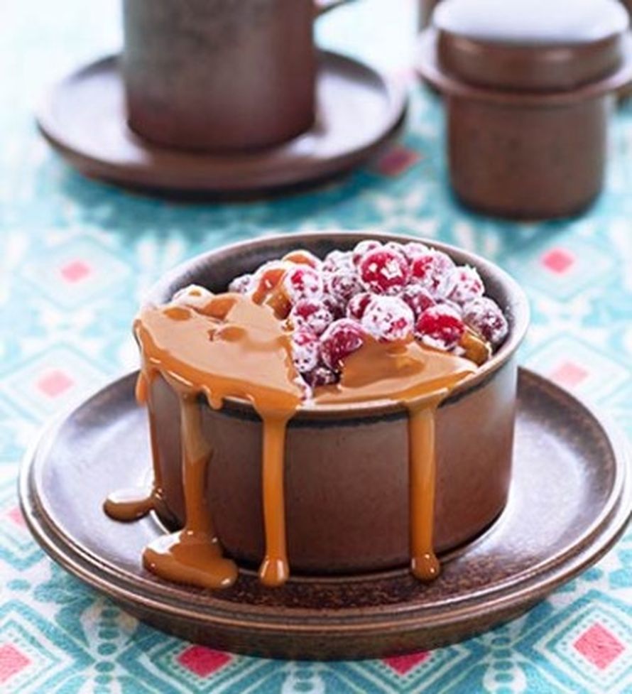 Tomusokeri, kirpeät karpalot ja kuuma kinuskikastike ovat voittamaton yhdistelmä.