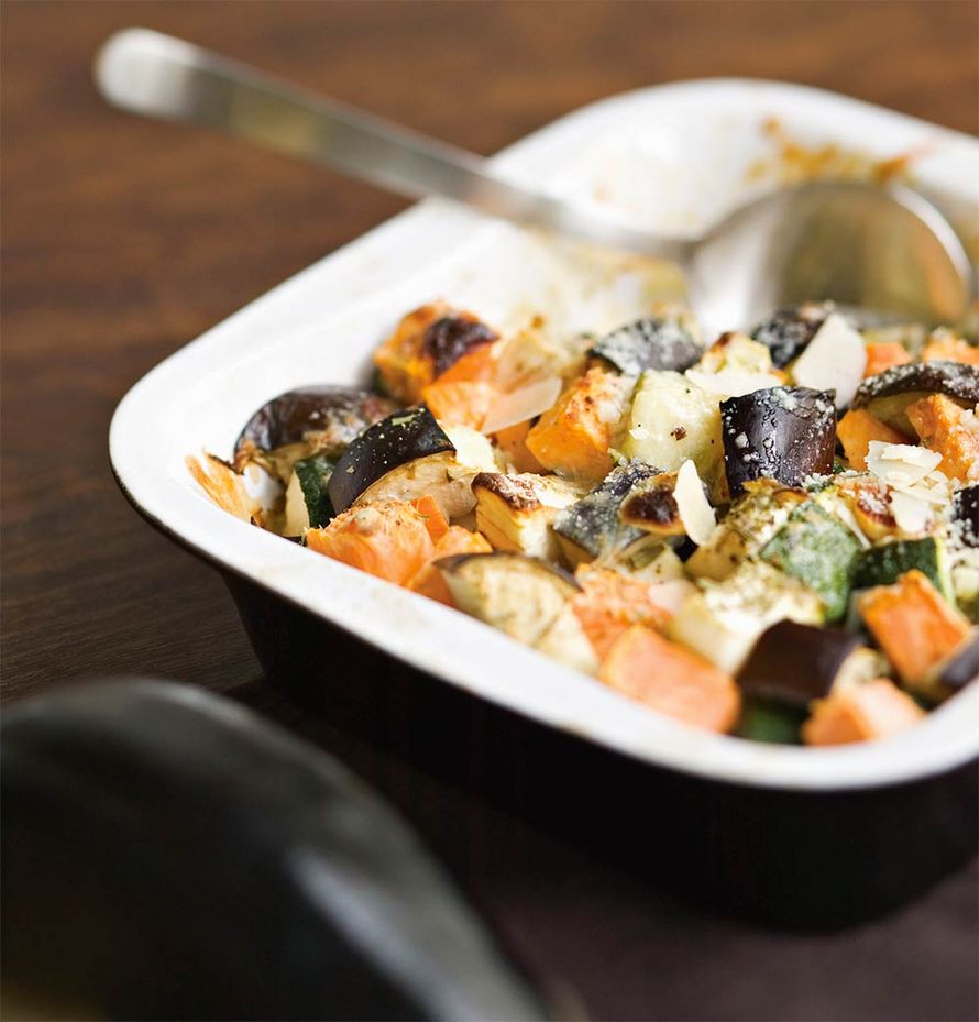 Maukas gratiini syntyy jääkaapin pohjalle kertyneistä vihanneksista.