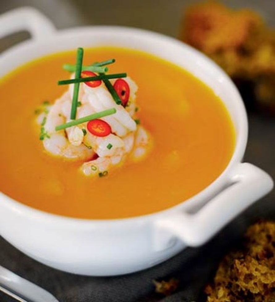 3. Lisää sekaan pehmeäksi paahdetut kurpitsakuutiot ja soseuta keitto tasaiseksi tehosekoittimen kulhossa tai sauvasekoittimella. Mausta suolalla, sokerilla ja maun mukaan pippurilla. Ohenna keittoa tarvittaessa vedellä. Kiehauta, lisää halutessasi kerma.