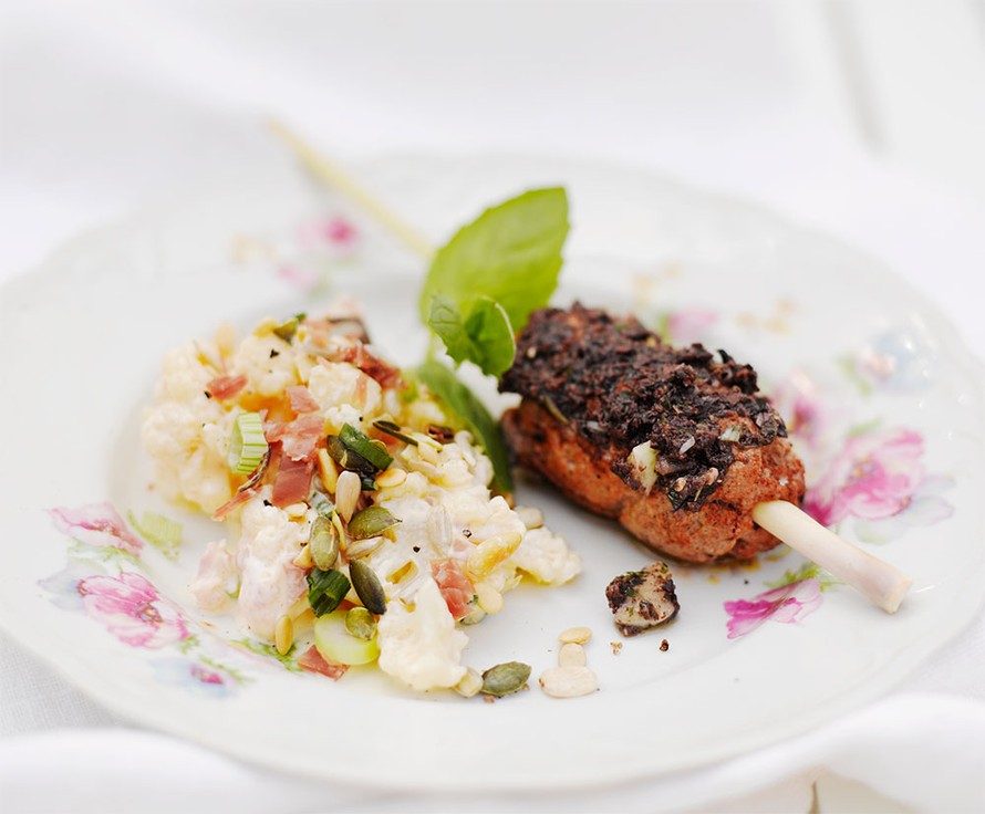 Lammasjauhelihakebabit ja minttu-oliivitahna