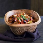 5. Kun pata kiehahtaa, laske lämpöä hieman alle keskilämmön. Nosta kansi päälle ja anna ruuan hautua levyllä lihan sitkeydestä riippuen 1-1½ tuntia. Sekoittele välillä. Tarkista maku ja lisää tarvittaessa suolaa.