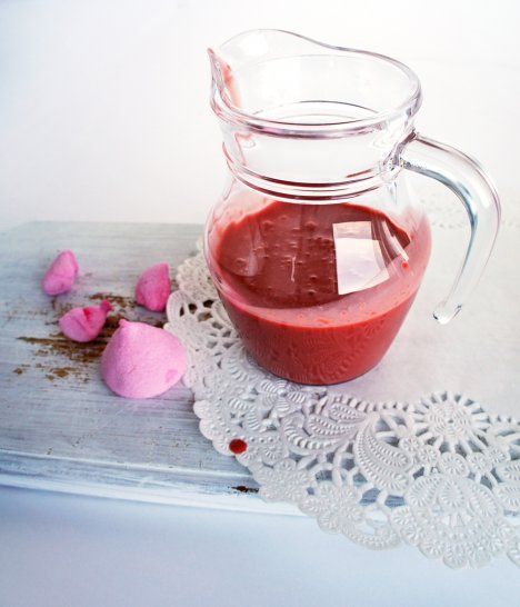 Paseeraa eli painele kastike tiheän siivilän läpi siten, että kaikki vadelmasose irtoaa mukaan kastikkeeseen.