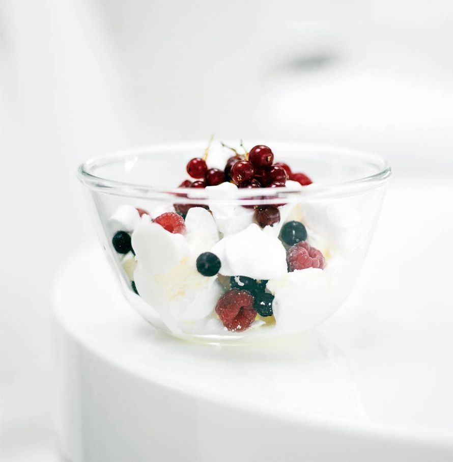 Raikas jälkiruoka syntyy marengista ja marjoista.