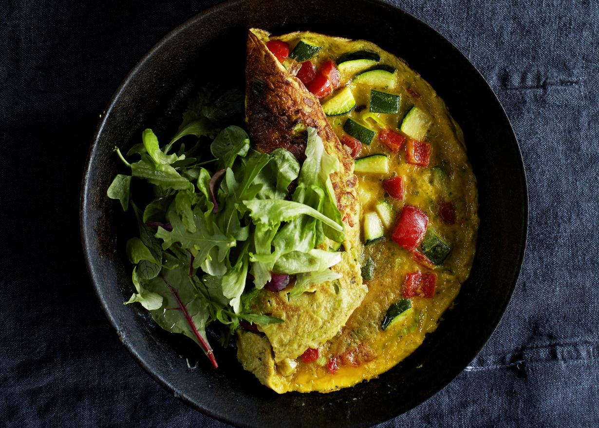 Jos käytät kypsennettäviä aineita kuten perunaa, paprikaa, sieniä, kesäkurpitsaa tai makkaraa, kuullota niitä ensin pannulla rasvassa ja lisää munakasmassa sen jälkeen niiden päälle.