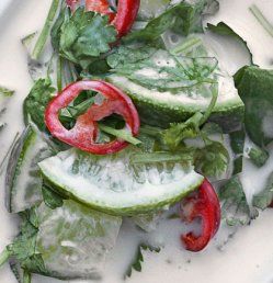 Pese ja lohko limetit. Halkaise chili ja poista siemenet. Hienonna chili. Leikkaa korianteri karkeaksi. Laita limetit, chili ja korianteri kulhoon. Puserra aineksia esimerkiksi puukauhalla kulhon pohjaa vasten niin, että neste irtoaa. Sekoita kookosmaito ja makea chilikastike joukkoon. Käytä marinadia broilerin tai lammasvartaiden maustamiseen.